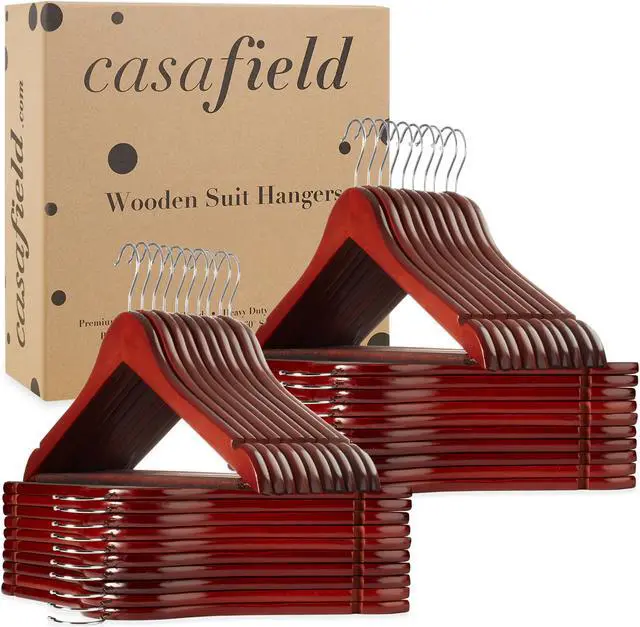 The strong, 360-degree swivel hook easily allows you to hang any garment in either direction. Our shiny chrome hooks also resist rusting for lasting use. Casafield wooden suit hangers are great for hanging heavy and bulky winter coats, men's or women's suits, and much more.