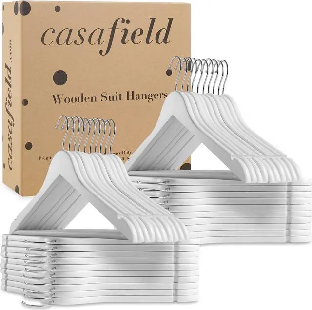 The strong, 360-degree swivel hook easily allows you to hang any garment in either direction. Our shiny chrome hooks also resist rusting for lasting use. Casafield wooden suit hangers are great for hanging heavy and bulky winter coats, men's or women's suits, and much more.