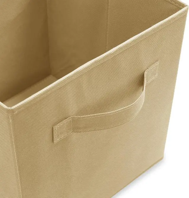Instantly organize toys, books, magazines, photo albums, blankets, clothing, and more with these sturdy yet lightweight cube storage bins from Casafield. Constructed of heavy-duty, nonwoven polypropylene fabric material, and reinforced with extra cardboard support, these cloth basket organizers, with dual handles, look just like drawers. An ideal solution for instant storage in any space, these fabric cubes create a streamlined and sleek look in any room. Perfect for college dorms, kid's rooms, the office, garage, spare closet, and more.
