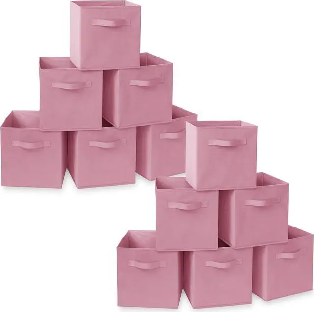 Instantly organize toys, books, magazines, photo albums, blankets, clothing, and more with these sturdy yet lightweight cube storage bins from Casafield. Constructed of heavy-duty, nonwoven polypropylene fabric material, and reinforced with extra cardboard support, these cloth basket organizers, with dual handles, look just like drawers. An ideal solution for instant storage in any space, these fabric cubes create a streamlined and sleek look in any room. Perfect for college dorms, kid's rooms, the office, garage, spare closet, and more.