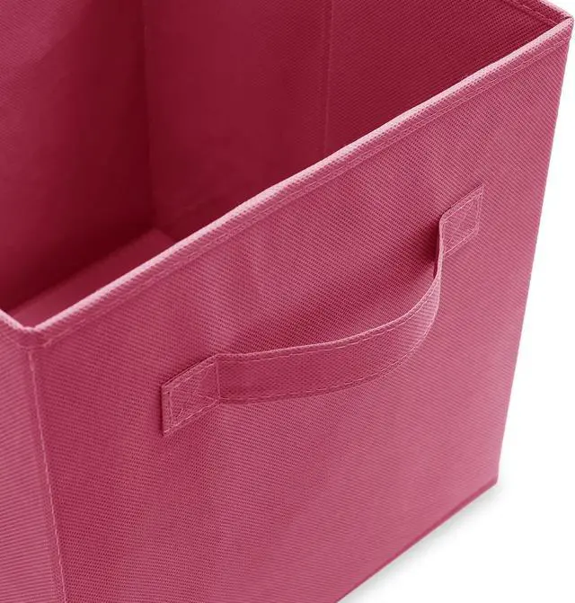 Instantly organize toys, books, magazines, photo albums, blankets, clothing, and more with these sturdy yet lightweight cube storage bins from Casafield. Constructed of heavy-duty, nonwoven polypropylene fabric material, and reinforced with extra cardboard support, these cloth basket organizers, with dual handles, look just like drawers. An ideal solution for instant storage in any space, these fabric cubes create a streamlined and sleek look in any room. Perfect for college dorms, kid's rooms, the office, garage, spare closet, and more.