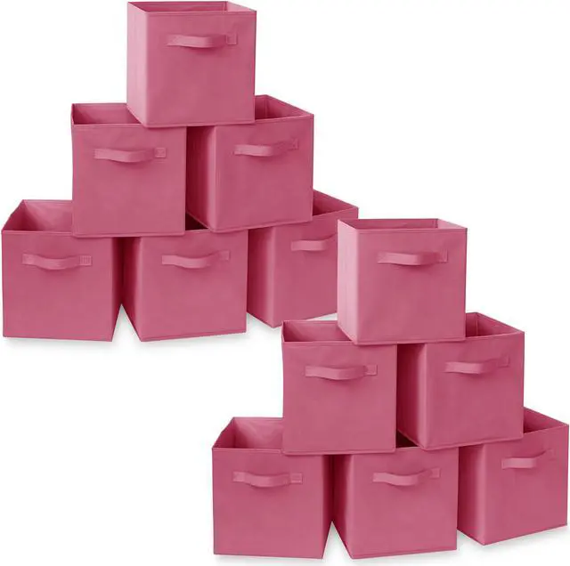 Casafield Set of 12 Collapsible Fabric Cube Storage Bins, Hot Pink - 11" Foldable Cloth Baskets for Shelves, Cubby Organizers & More