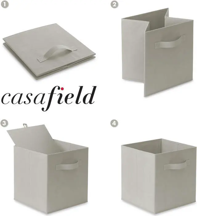 Instantly organize toys, books, magazines, photo albums, blankets, clothing, and more with these sturdy yet lightweight cube storage bins from Casafield. Constructed of heavy-duty, nonwoven polypropylene fabric material, and reinforced with extra cardboard support, these cloth basket organizers, with dual handles, look just like drawers. An ideal solution for instant storage in any space, these fabric cubes create a streamlined and sleek look in any room. Perfect for college dorms, kid's rooms, the office, garage, spare closet, and more.