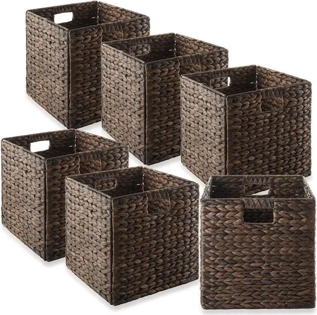These water hyacinth storage cubes are the perfect combination of functionality, style, and sustainability for your home organization needs. Instantly organize toys, books, magazines, photo albums, blankets, clothing, and more with these storage baskets. Well-crafted organizers, these versatile storage bins are handwoven with eco-friendly water hyacinth and feature a sturdy metal frame. Designed to look like drawers, these storage bins with dual handles are easy to carry and fit most storage cube shelving units and cubby organizers.