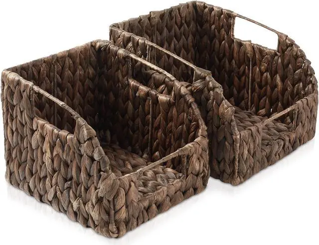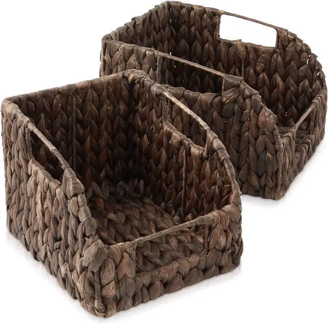 These water hyacinth pantry baskets are the perfect combination of functionality, style, and sustainability for your home organization needs. Instantly organize your pantry, kitchen shelves, bathroom, laundry room, and more with Casafield's angled pantry storage baskets. These versatile storage bins are handwoven with eco-friendly water hyacinth and feature handles on both sides and one in the front for easy access. Casafield's kitchen shelf organizers are not just practical; they will also add a touch of rustic charm to your living space. The natural texture and earthy tones of water hyacinth create a warm and inviting atmosphere. Use them in your kitchen to organize soup cans and pantry staples, in your bathroom for organizing toiletries, or as a creative solution in your home office or entryway. These shelf baskets will seamlessly blend into any decor, from farmhouse to coastal to bohemian and everything in between. Care Instruction: To clean, gently dust with a soft cloth or duster. Designed for indoor use only.
