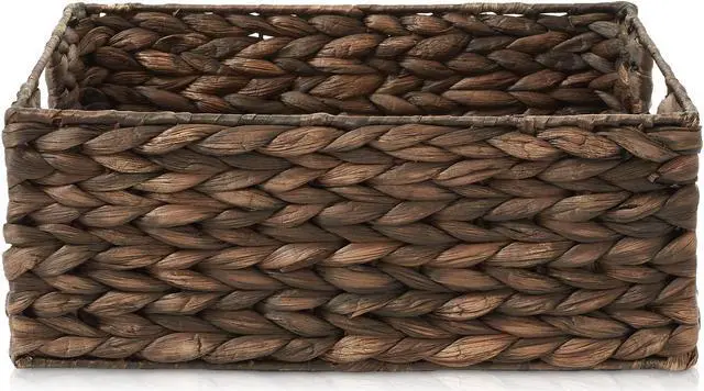 These water hyacinth pantry baskets are the perfect combination of functionality, style, and sustainability for your home organization needs. Instantly organize your pantry, kitchen shelves, bathroom, laundry room, and more with Casafield's rectangular pantry storage baskets. These versatile storage organizer bins are handwoven with eco-friendly water hyacinth and feature handles on both the front and back sides for easy access. Label the contents of each basket using the chalkboard labels and included chalk marker.
