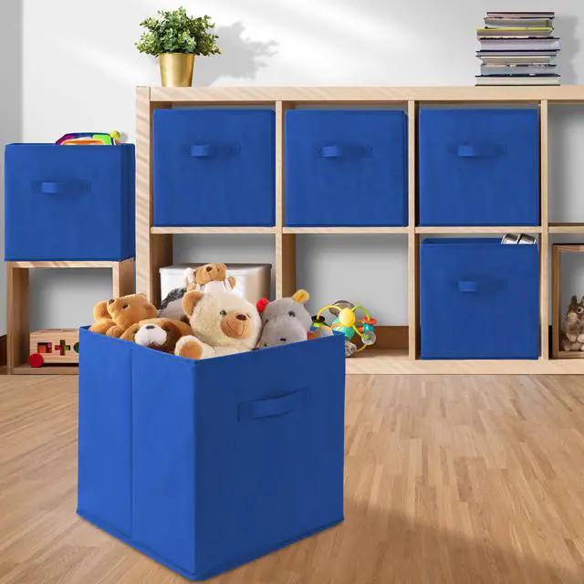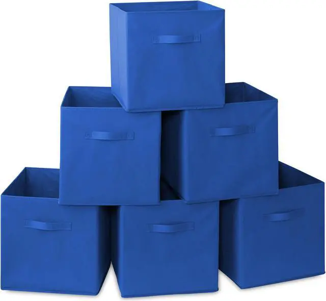 Instantly organize toys, books, magazines, photo albums, blankets, clothing, and more with these sturdy yet lightweight cube storage bins from Casafield. Constructed of heavy-duty, nonwoven polypropylene fabric material, and reinforced with extra cardboard support, these cloth basket organizers, with dual handles, look just like drawers. An ideal solution for instant storage in any space, these fabric cubes create a streamlined and sleek look in any room. Perfect for college dorms, kid's rooms, the office, garage, spare closet, and more.