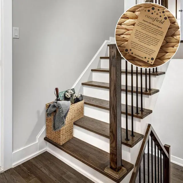 Enhance your staircase organization efforts with this water hyacinth stair step basket and efficiently store various items destined for upstairs. Its thoughtfully designed dual compartments ensure that belongings are neatly tucked away, minimizing clutter, and simplifying daily routines. From books and shoes to toys and accessories, this basket accommodates a diverse range of items, making it a versatile organizer for any staircase. This combination of practicality and style makes it a versatile piece that seamlessly blends with various decor schemes, from modern to farmhouse to traditional.