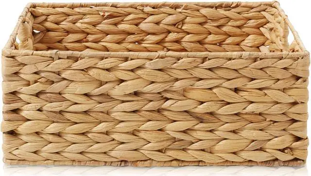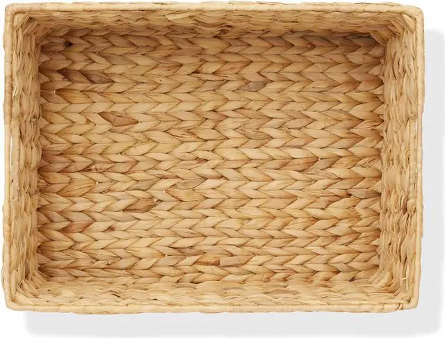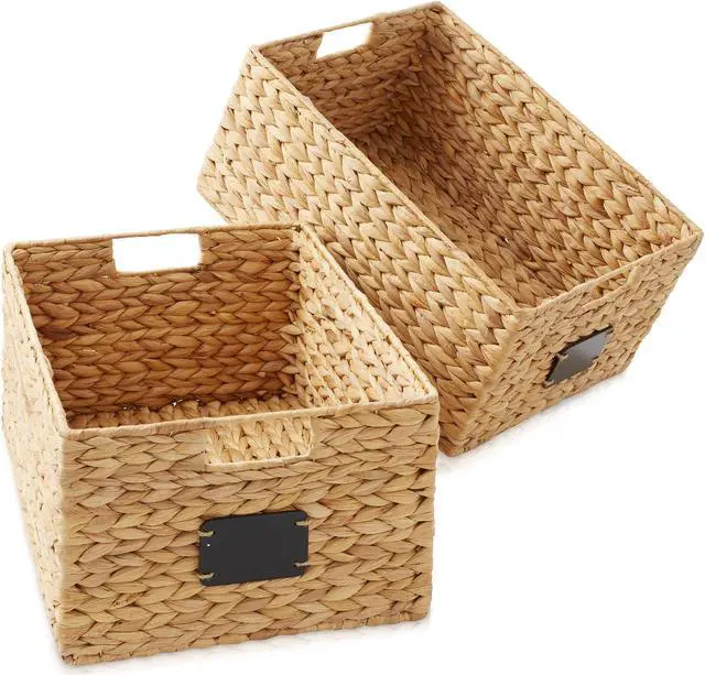 These water hyacinth pantry baskets are the perfect combination of functionality, style, and sustainability for your home organization needs. Instantly organize your pantry, kitchen shelves, bathroom, laundry room, and more with Casafield's rectangular pantry storage baskets. These versatile storage organizer bins are handwoven with eco-friendly water hyacinth and feature handles on both the front and back sides for easy access. Label the contents of each basket using the chalkboard labels and included chalk marker.