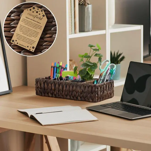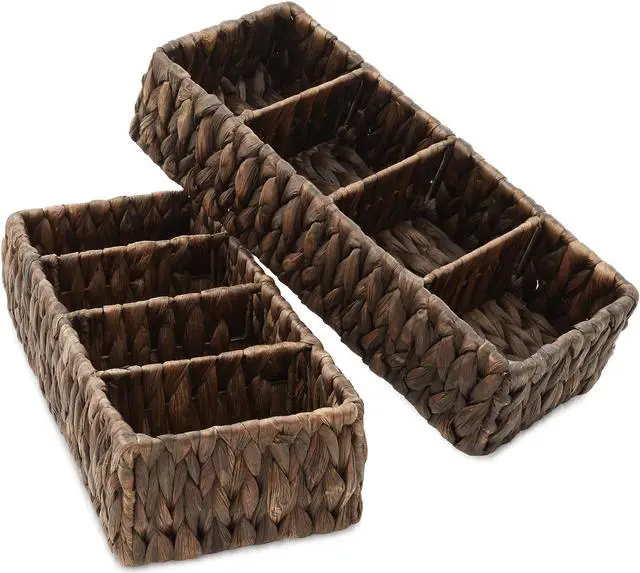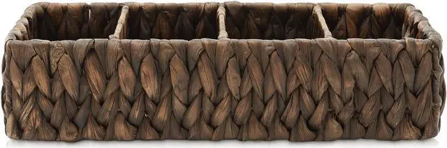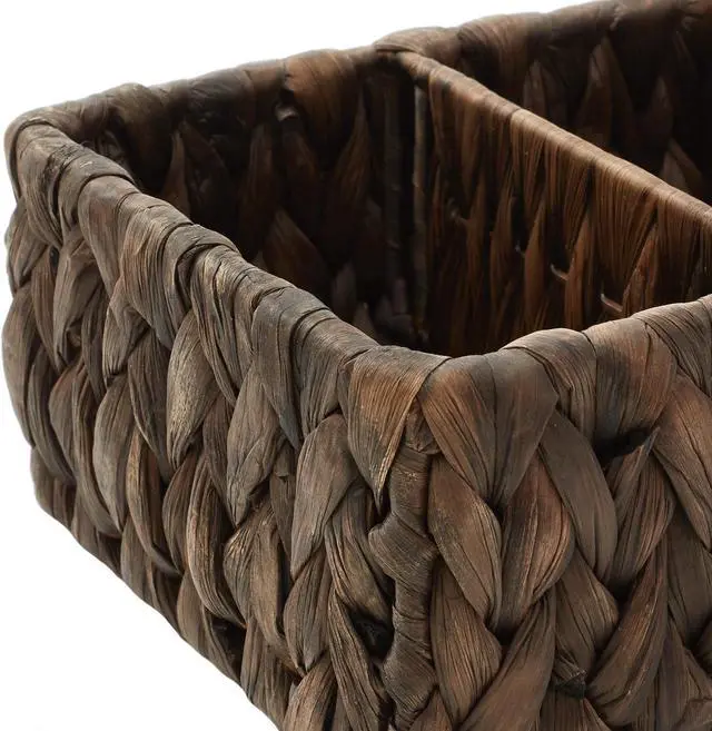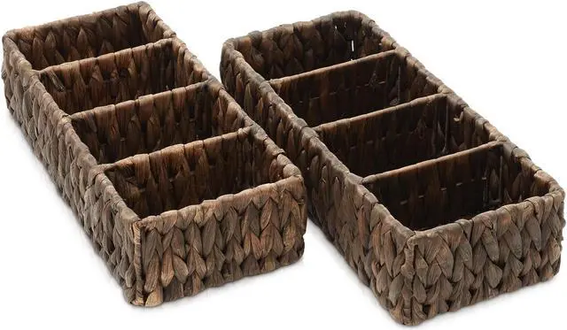 Casafield's narrow 4-section storage baskets are more than just practical; they also add a touch of rustic charm to your living space. The natural texture and earthy tones of water hyacinth create a warm and inviting atmosphere. Use them in your kitchen to organize pantry staples, in your bathroom for organizing hand towels, or as a creative solution in your home office or entryway. These shelf baskets will seamlessly blend into any decor, from farmhouse to coastal to boho and everything in between.