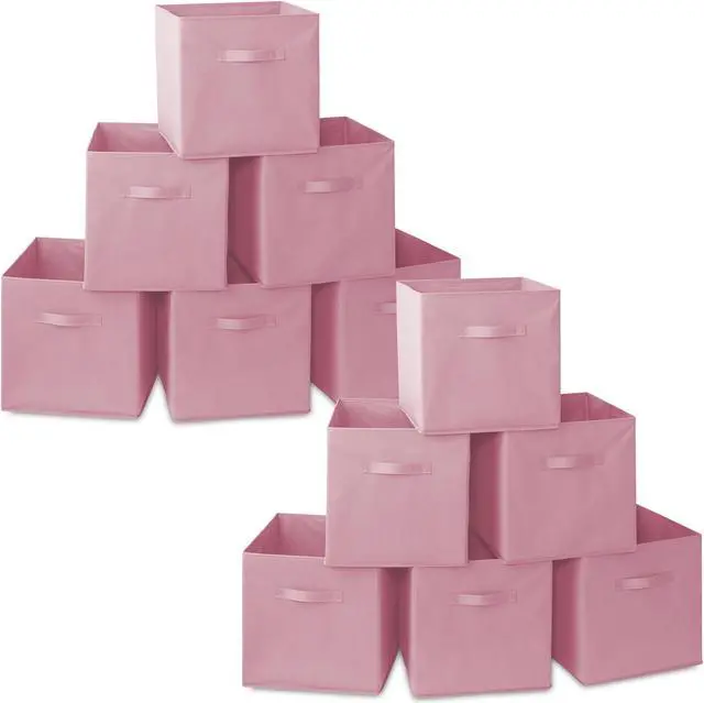 Casafield Set of 12 Collapsible Fabric Cube Storage Bins, Light Pink - 13" Foldable Cloth Baskets for Shelves, Cubby Organizers & More
