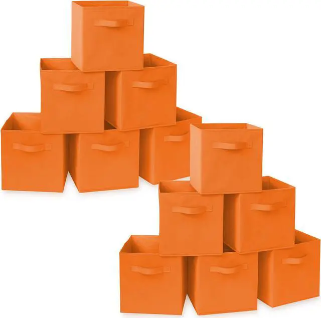 Instantly organize toys, books, magazines, photo albums, blankets, clothing, and more with these sturdy yet lightweight cube storage bins from Casafield. Constructed of heavy-duty, nonwoven polypropylene fabric material, and reinforced with extra cardboard support, these cloth basket organizers, with dual handles, look just like drawers. An ideal solution for instant storage in any space, these fabric cubes create a streamlined and sleek look in any room. Perfect for college dorms, kid's rooms, the office, garage, spare closet, and more.