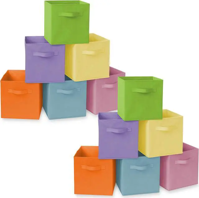 • Set of 12 collapsible fabric storage cubes, available in a variety of fun colors to match any decor
