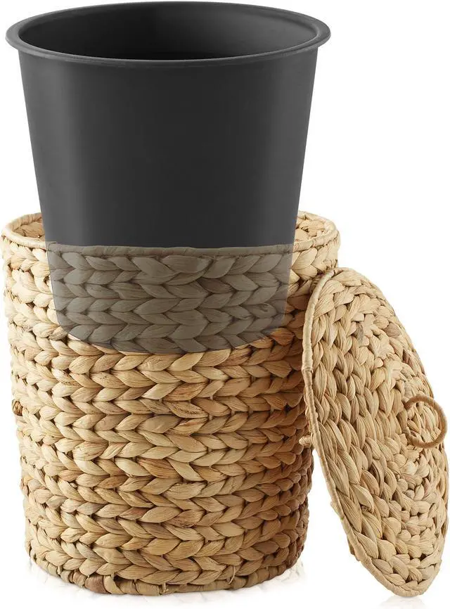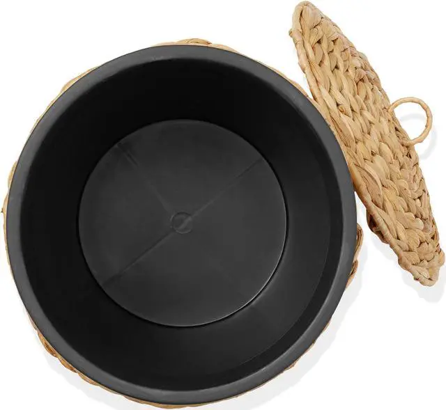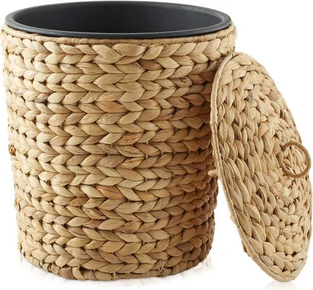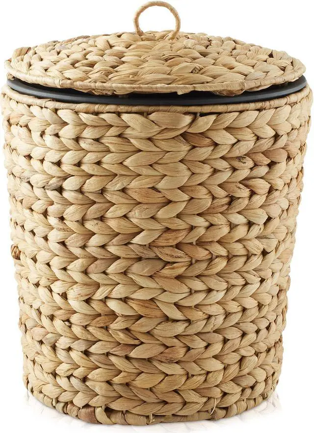 Crafted with sustainability in mind, this trash can is made from durable water hyacinth, making it an eco-friendly choice for the environmentally conscious consumer. The fitted lid helps to contain odors, while the included liner simplifies cleaning and ensures your trash can stays in pristine condition. Enjoy a responsible waste management solution that doesn't compromise on style.