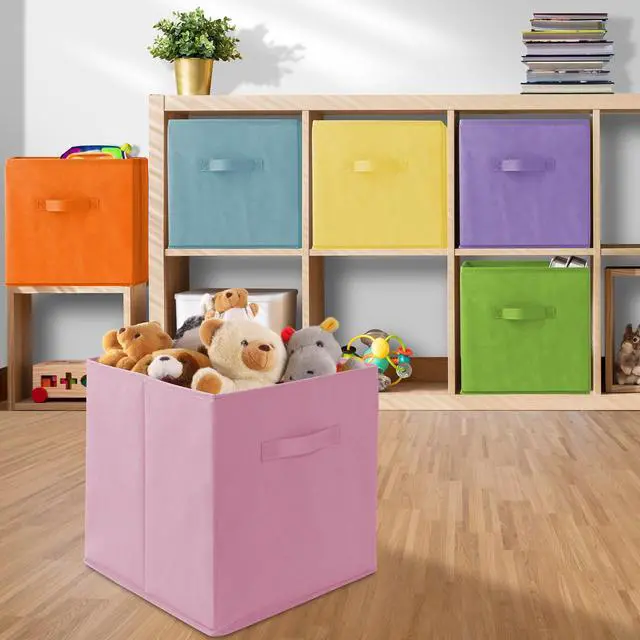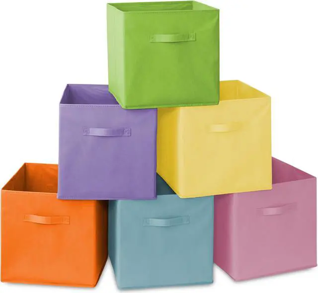 Instantly organize toys, books, magazines, photo albums, blankets, clothing, and more with these sturdy yet lightweight cube storage bins from Casafield. Constructed of heavy-duty, nonwoven polypropylene fabric material, and reinforced with extra cardboard support, these cloth basket organizers, with dual handles, look just like drawers. An ideal solution for instant storage in any space, these fabric cubes create a streamlined and sleek look in any room. Perfect for college dorms, kid's rooms, the office, garage, spare closet, and more.