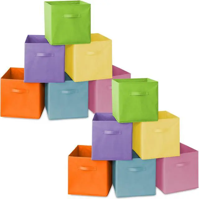 Instantly organize toys, books, magazines, photo albums, blankets, clothing, and more with these sturdy yet lightweight cube storage bins from Casafield. Constructed of heavy-duty, nonwoven polypropylene fabric material, and reinforced with extra cardboard support, these cloth basket organizers, with dual handles, look just like drawers. An ideal solution for instant storage in any space, these fabric cubes create a streamlined and sleek look in any room. Perfect for college dorms, kid's rooms, the office, garage, spare closet, and more.