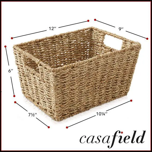 These storage baskets are the perfect combination of functionality, style, and sustainability for your home organization needs. Instantly organize your pantry, kitchen shelves, bathroom, laundry room, and more with Casafield's rectangular storage baskets. These versatile storage bins are handwoven with eco-friendly seagrass and feature handles on both sides for easy access.