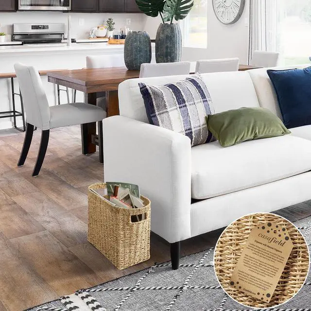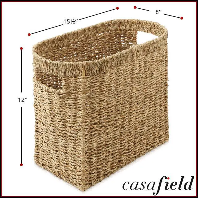 Crafted with care and designed for functionality, Casafield's magazine holder basket offers a blend of sustainability and functionality. Constructed from seagrass, it embodies eco-conscious living by utilizing renewable materials. Seagrass, known for its rapid growth and ability to regenerate quickly, ensures a sustainable approach to storage solutions.