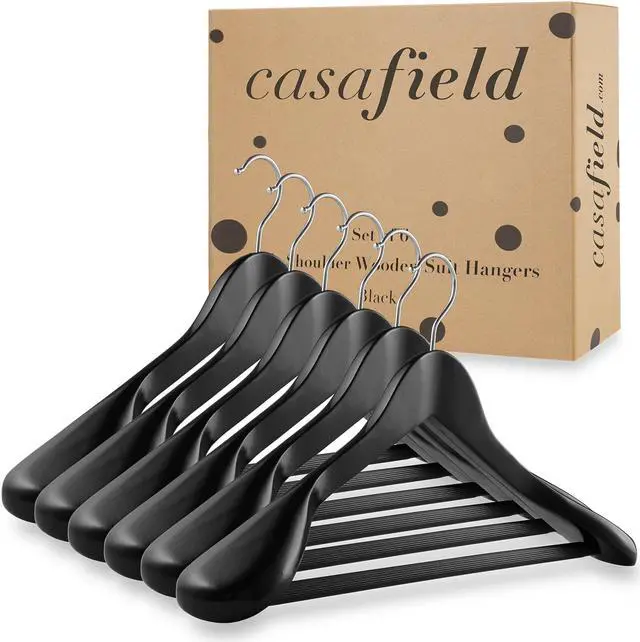 The strong, 360-degree swivel hook easily allows you to hang any garment in either direction. Our shiny chrome hooks also resist rusting for lasting use. Casafield wooden suit hangers are great for hanging heavy and bulky winter coats, men's or women's suits, and much more.