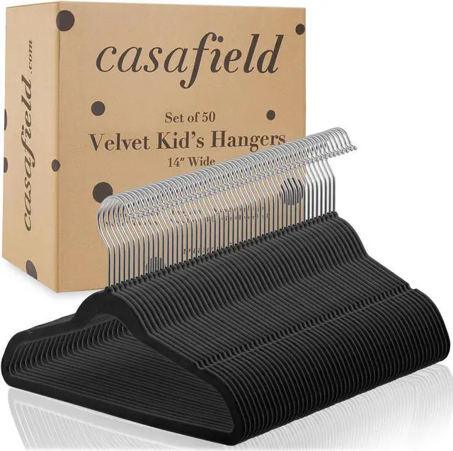 Our textured clothes hangers feature precisely cut notches and contoured shoulders gripping items like tank tops and strappy dresses with ease. These velvet kid's hangers from Casafield feature a horizontal cross-bar that securely grips jeans, pants, trousers, skirts, and sweaters while preventing creases and clothing piles on the closet floor. The double-duty design is perfect for hanging both pants and tops together allowing you and your child to organize all their outfits making them ready to wear.
