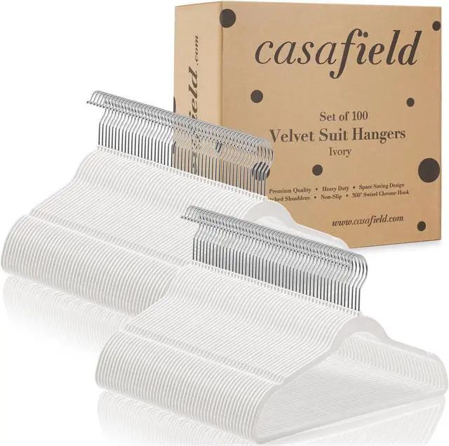Casafield 100 Ivory Velvet Suit Hangers - Space Saving, Non-Slip & Swivel Hook for Dress Clothes, Coats, Pants, Shirts, Skirts