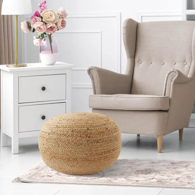 Compact yet substantial, this pouf transforms easily into the ideal footrest, occasional seat, or side table with the addition of a tray. Whether you're curling up with a book in a reading nook, setting up extra seating in your living room, decorating a nursery, or enjoying casual lounge space on your patio, this pouf adapts to your needs. Beyond its practical use, this pouf embodies mindful living. Light enough to move when you need it, sturdy enough to depend on, and beautiful enough to display, this jute pouf ottoman is the perfect blend of style, comfort, and sustainability.
