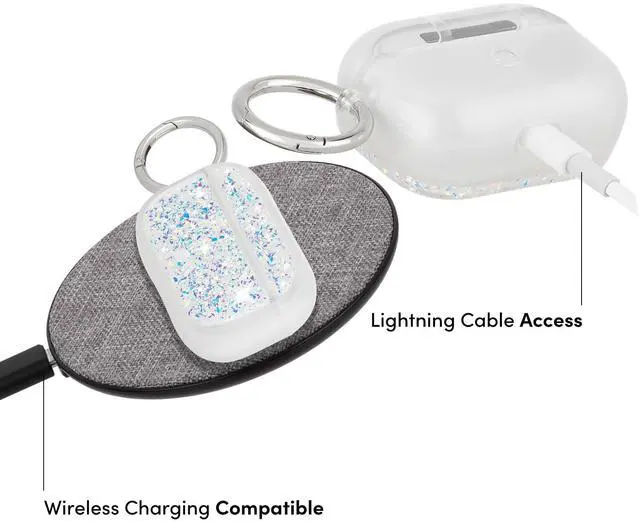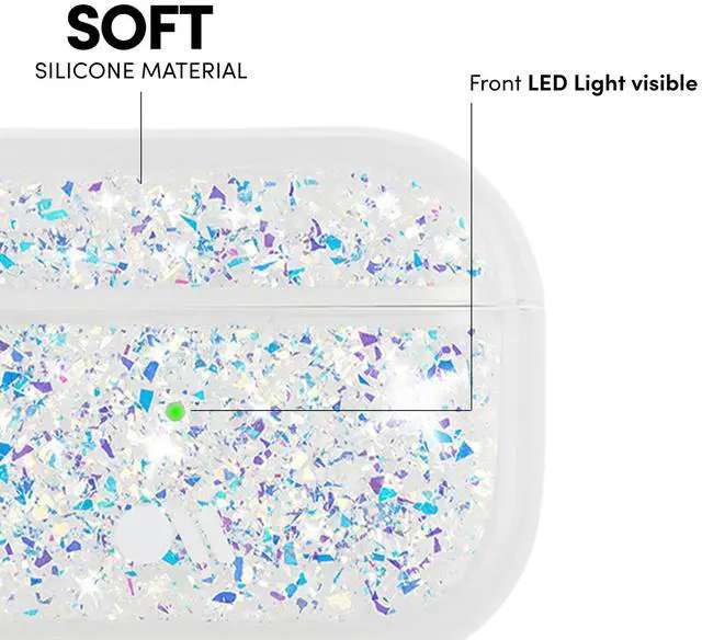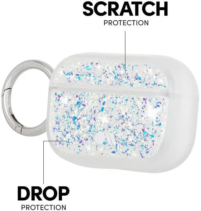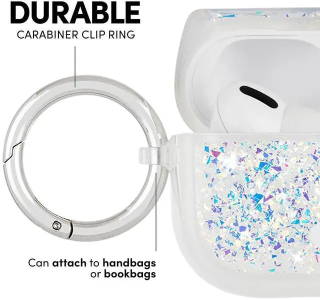 The Twinkle design has eye-catching, reflective iridescent glitter foil that changes at every angle, making your AirPods really sparkle. The slim fit design gives you a better grip on those precious pods. The AirPods Pro case also comes with a circular ring clip to easily hook it on to your bag, belt loop or keys.
