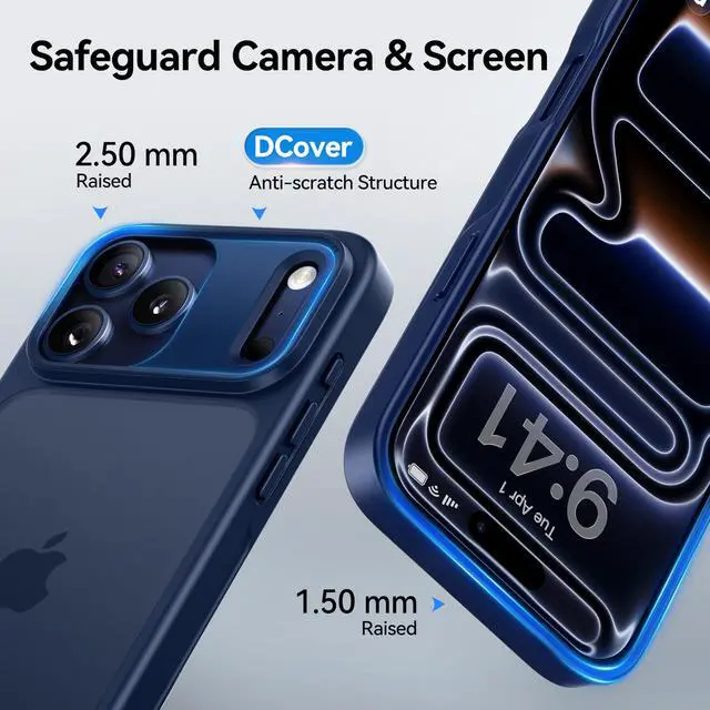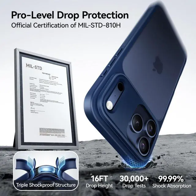 [80% Lens Coverage & 15FT Drop Protection] Specially designed for iPhone 17 Pro with upgraded 80% lens coverage and raised edges (2.5mm around the camera, 1.5mm around the screen) for enhanced protection against scratches. Certified MIL-STD 810G-516.6, it withstands drops up to 15 feet with a triple-layer frame and U-SHOCK air-cushion corners.