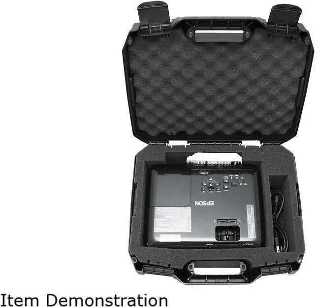 | Features | Custom foam design is made to fit a wide range of projectors by Epson and ViewSonic with maximum supported projector dimensions of 12.2" x 10.7" x 4.3" - See description for supported models Hard shell exterior made of dense, injection composite plastic for superior protection against blunt forces, drops, dings and other unforeseen mishaps Interior protection consists of a three-layer dense polyurethane foam arrangement utilizing dense top and bottom layers of foam in combination with a custom-cut middle foam to offer padded protection from all sides External dimensions: 17.0" x 14.0" x 6.0" ; Additional features include carrying handle, dual latch closure and padlock holes for optional security |
