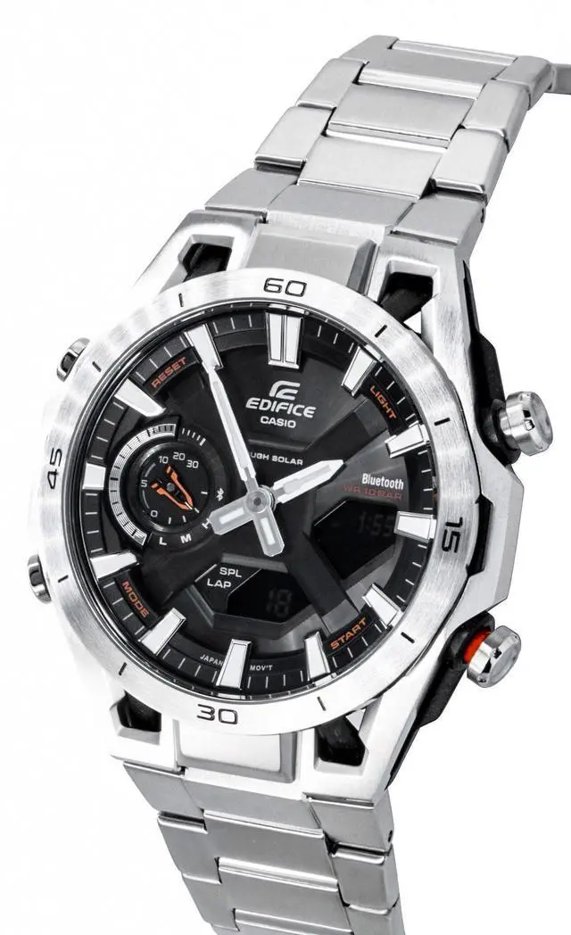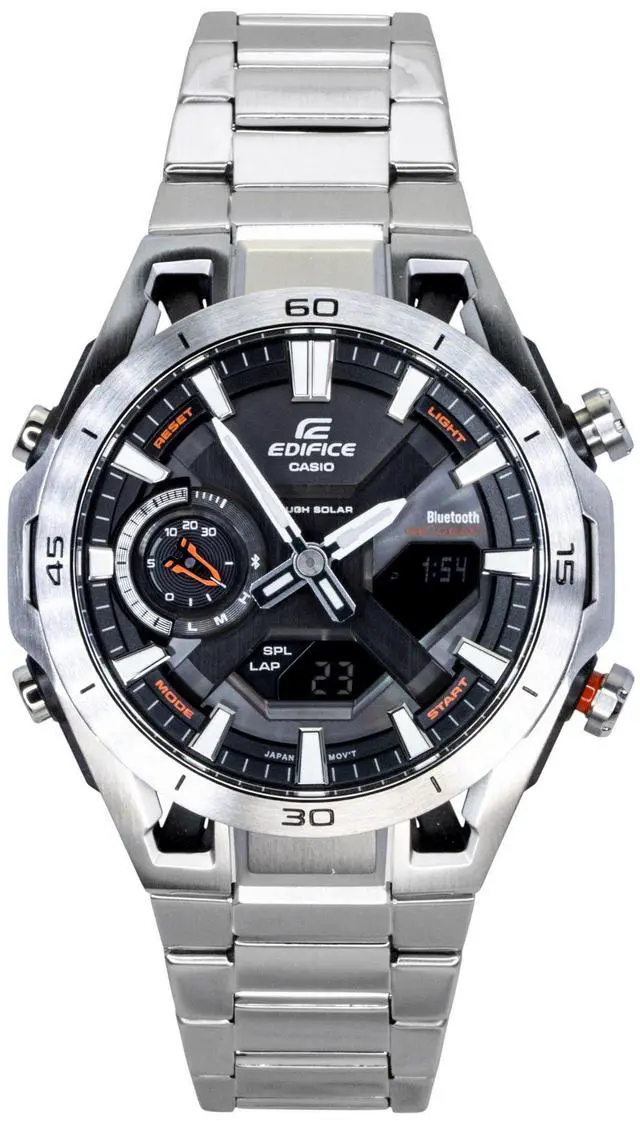 Casio Edifice Analog Digital Smartphone Link Stainless Steel Black Dial Solar ECB-2300D-1A ECB2300D-1 100M Men's Watch