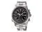 The stainless steel three-link bracelet straps this watch to the wrist, while a fold-over push-button clasp with a safety ensures that it stays there. Finally, this watch offers water resistance up to 330 feet (100 meters). 1/20 second chronograph, slide rotating inner bezel Screw-lock crown, screw-lock case back