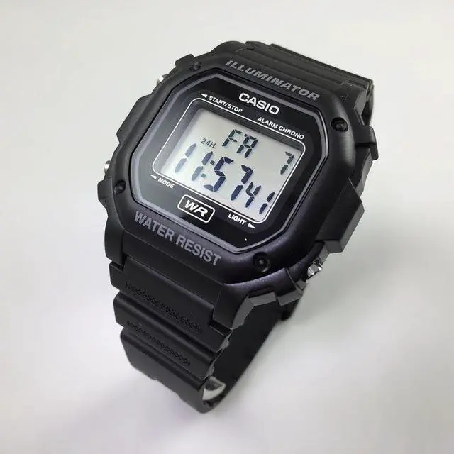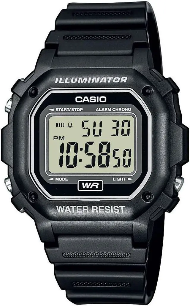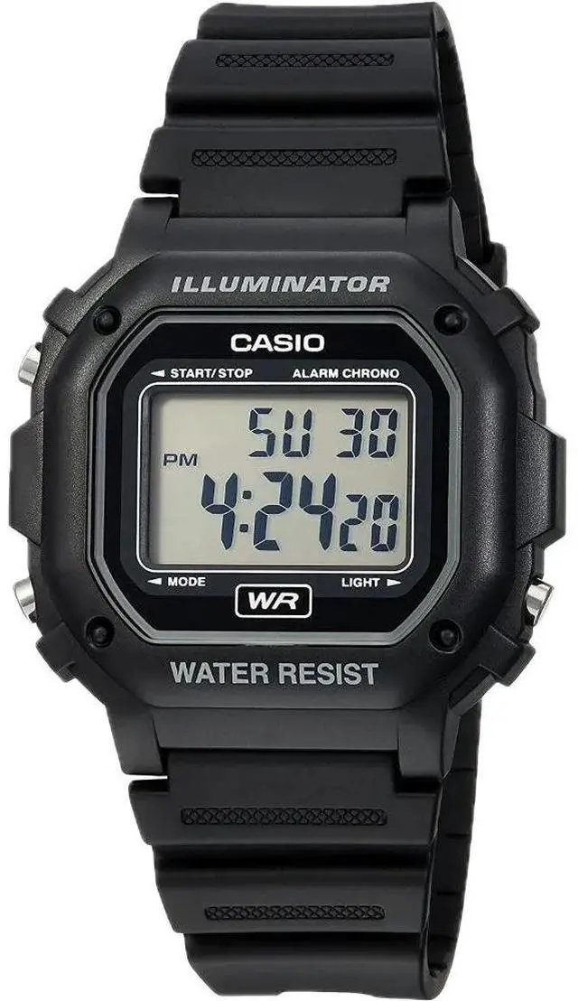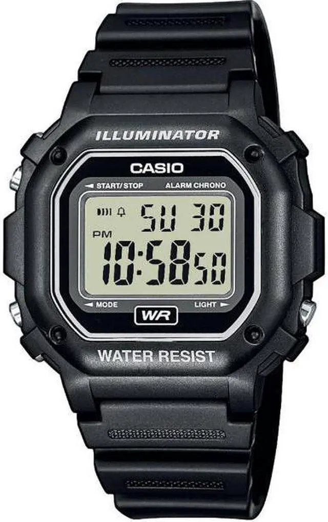 Illuminator An electro-luminescent panel causes the entire face to glow for easy reading. Stopwatch function - 1/100 sec. - 1 hour Elapsed time, split time and final time are measured with 1/100-sec accuracy. The watch can measure times of up to 1 hour. Daily alarm Automatic calendar 12/24-hour timekeeping. Resin case. Resin band. Adjustable fastening The clasp can be individually adjusted extremely easily for maximum comfort. 7 Years - 1 Battery The battery supplies the watch with sufficient energy for approx. seven years.