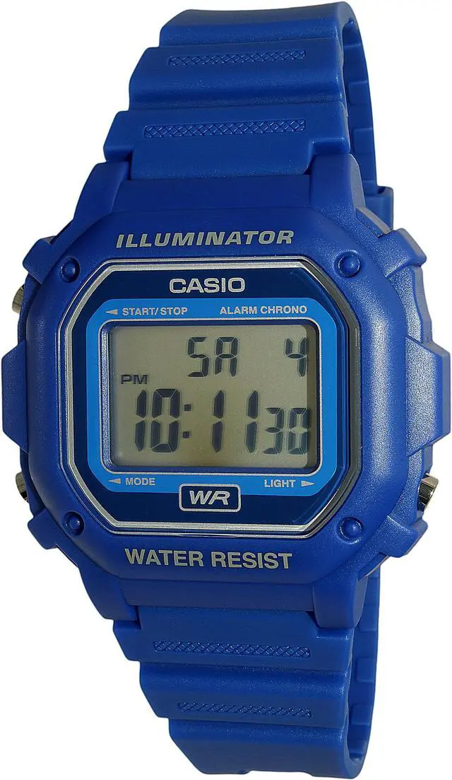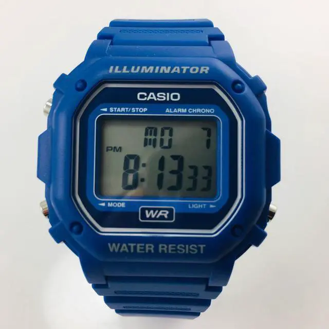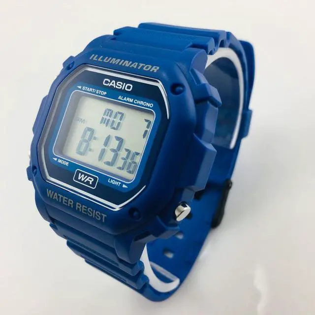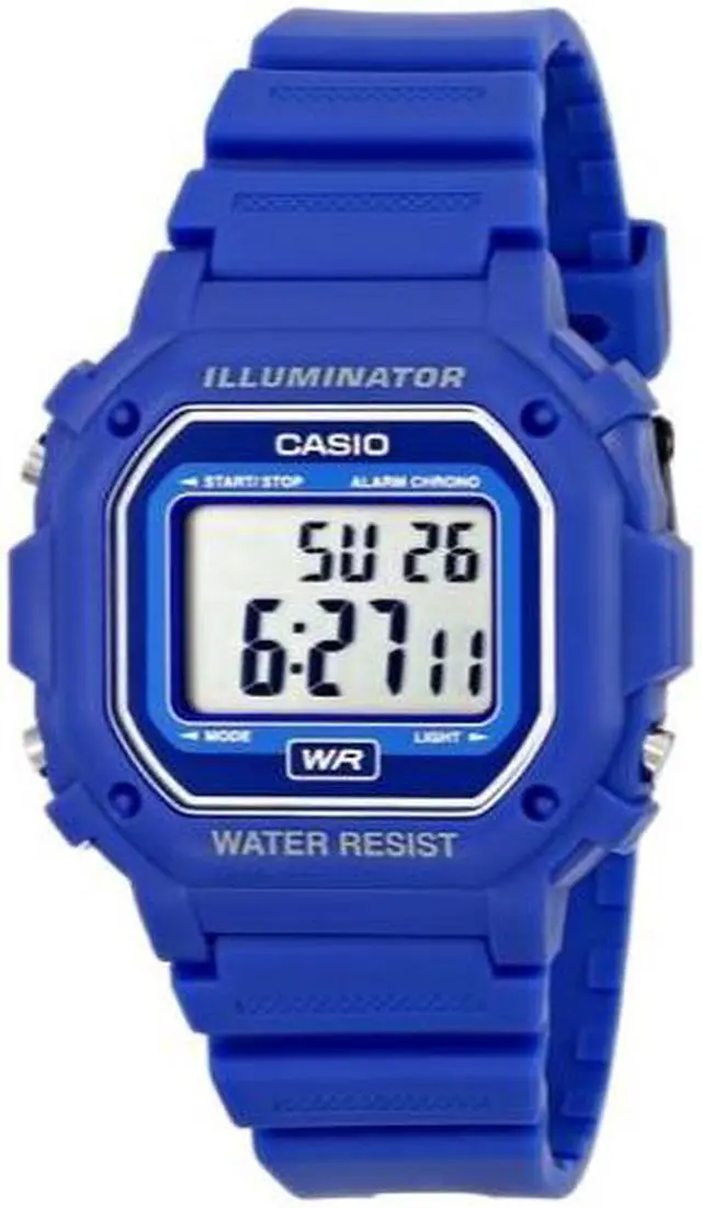 Illuminator An electro-luminescent panel causes the entire face to glow for easy reading. Stopwatch function - 1/100 sec. - 1 hour Elapsed time, split time and final time are measured with 1/100-sec accuracy. The watch can measure times of up to 1 hour. Daily alarm Automatic calendar 12/24-hour timekeeping. Resin case. Resin band. Adjustable fastening The clasp can be individually adjusted extremely easily for maximum comfort. 7 Years - 1 Battery The battery supplies the watch with sufficient energy for approx. seven years.