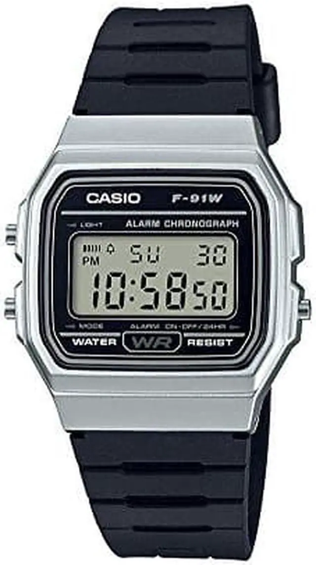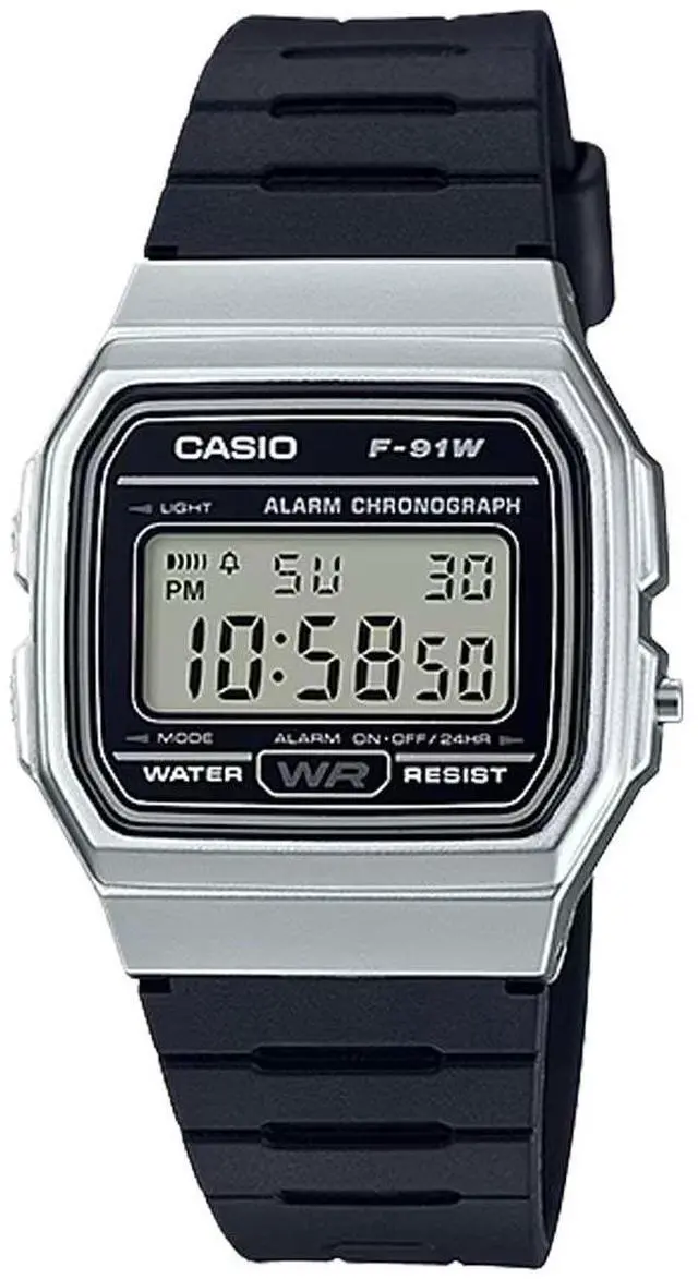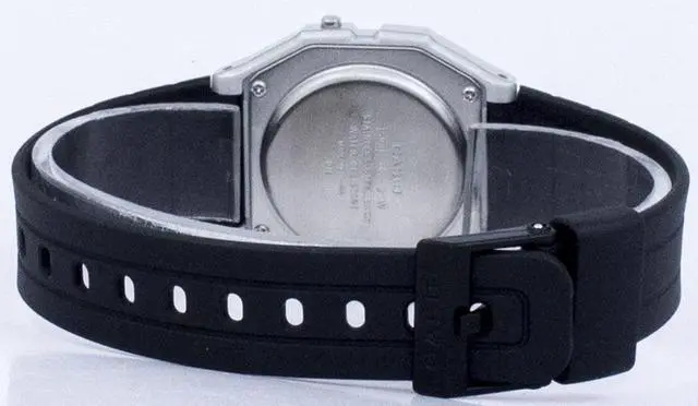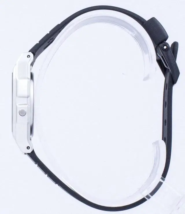 Gents Casio watch collection. Silver tone case. Black resin strap. Digital dial. Date and calendar display. Daily alarm. EL backlight. Hourly time signal. Stopwatch.