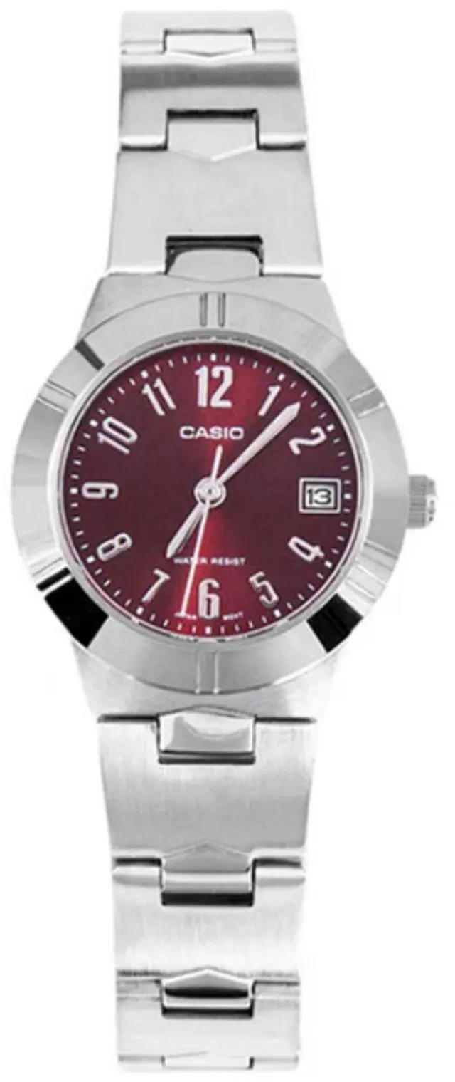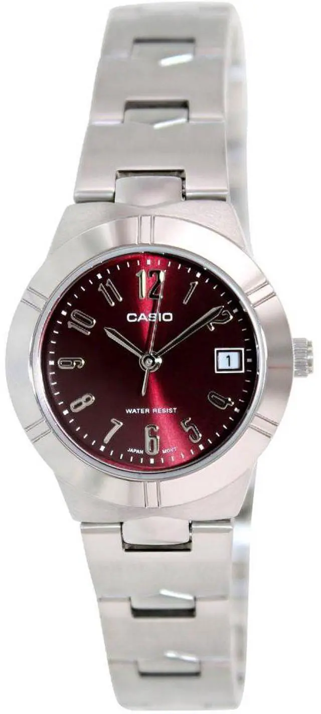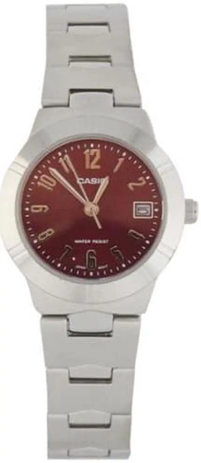 Casio Women's Classic Stainless steel case, Stainless steel bracelet, Red dial, Quartz movement, Scratch resistant mineral, Water resistant up to 5 ATM - 50 meters - 165 feet