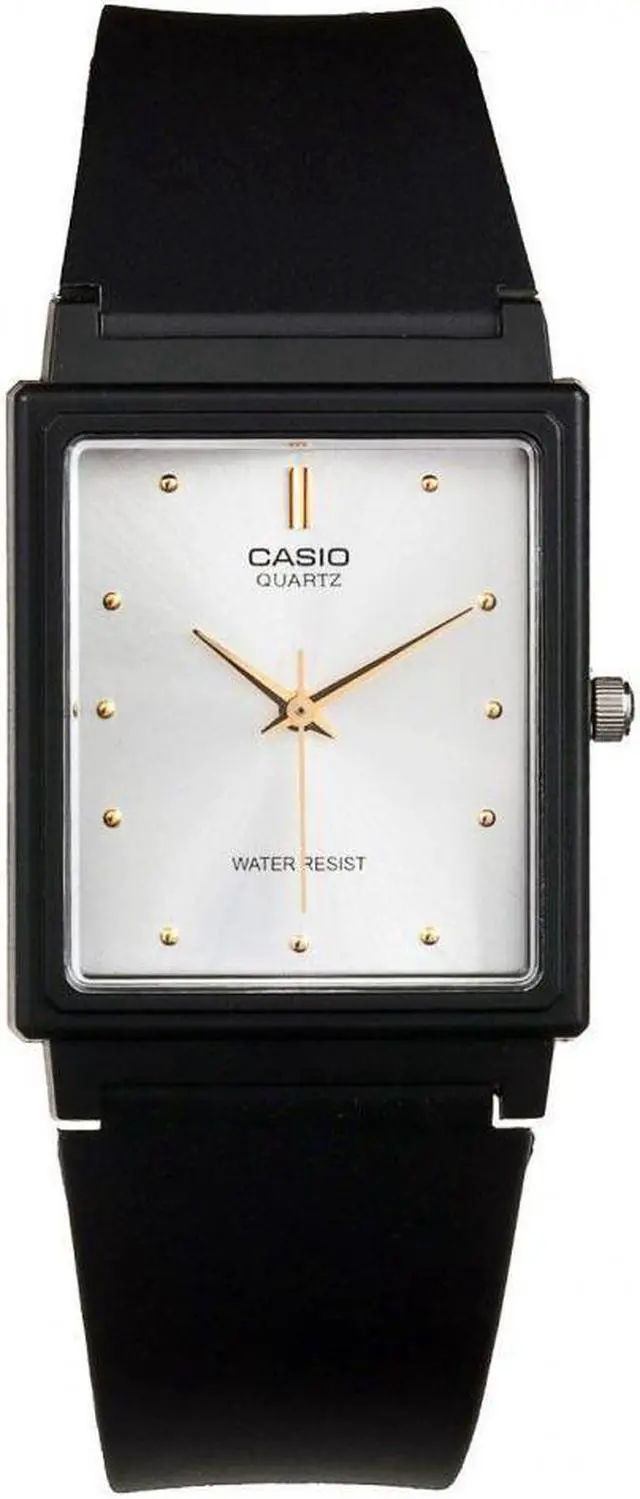 The Casio MQ-38-7A offers a sleek, minimalist design thats both modern and timeless. Featuring a rectangular silver dial with gold-tone details, this watch adds a touch of elegance to everyday wear. Its slim black strap ensures lightweight comfort, while the reliable quartz movement delivers consistent precision.