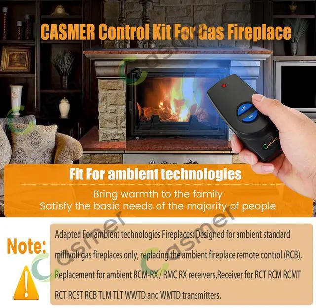 • Universal Fireplace Control Kit:Casmer fireplace remote control can control millivolt fireplaces, including petroleum gas, propane gas valves, and stoves. Compatible with the following brands: ambient, majestic, vermont casting, monessen, skytech, napoleon, lennox, cedar ridge, superior, desa, everwarm, hargrove, procom, ventures, buck, savannah, titanect ect log and fireplace. Note: Our product is not OEM manufactured, and the brands mentioned only indicate compatibility