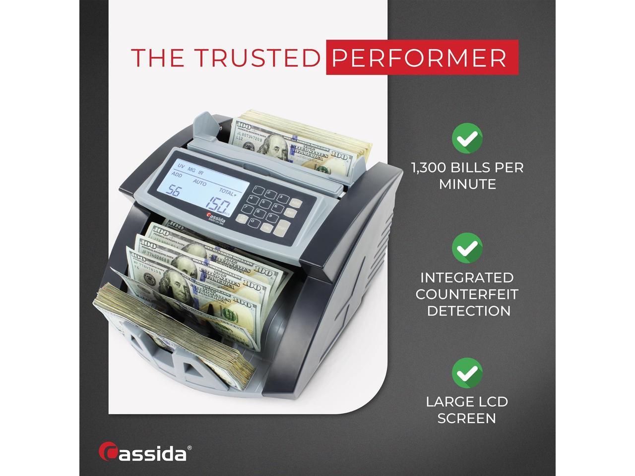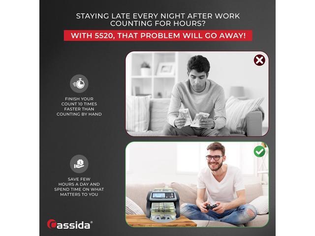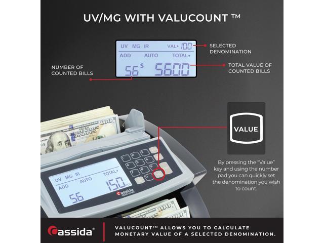 Cassida 5520UV/MG Cash Counter - 1,300 Bills/min - 9.7 x 11.5 x 7.5 - Gray