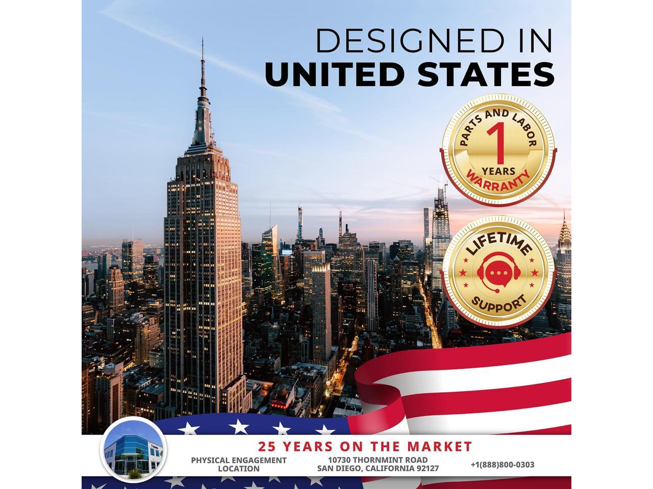Snap-open front cover, self-diagnostic system and self-lubricating bearings.
