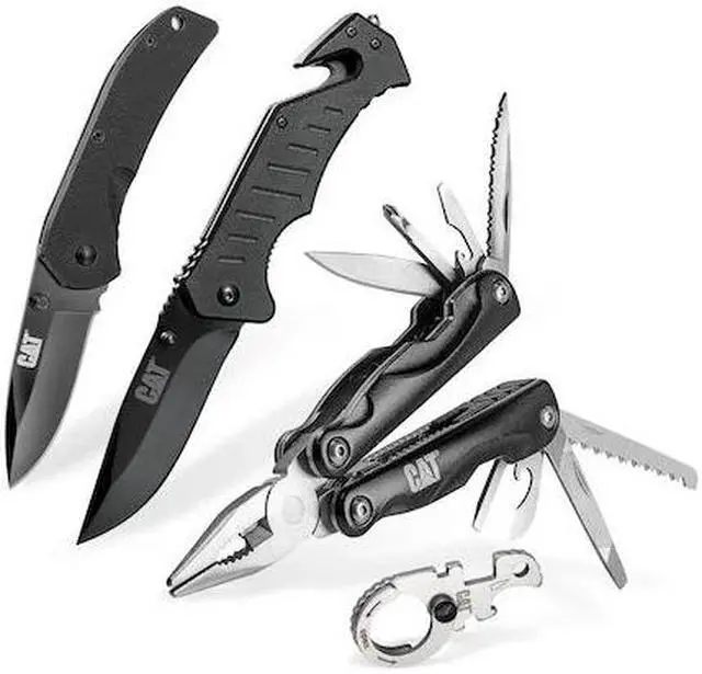 California Proposition 65: This product contains a chemical known to the State of California to cause birth defects or other reproductive harm. Cover all your EDC needs with this set of folding knives and tools. It includes medium and large pocket knives, a 12-in-1 multi-tool and a keychain tool. Stainless steel construction imparts strength and durability while the handles offer light weight and high grip for all-day comfort. 6