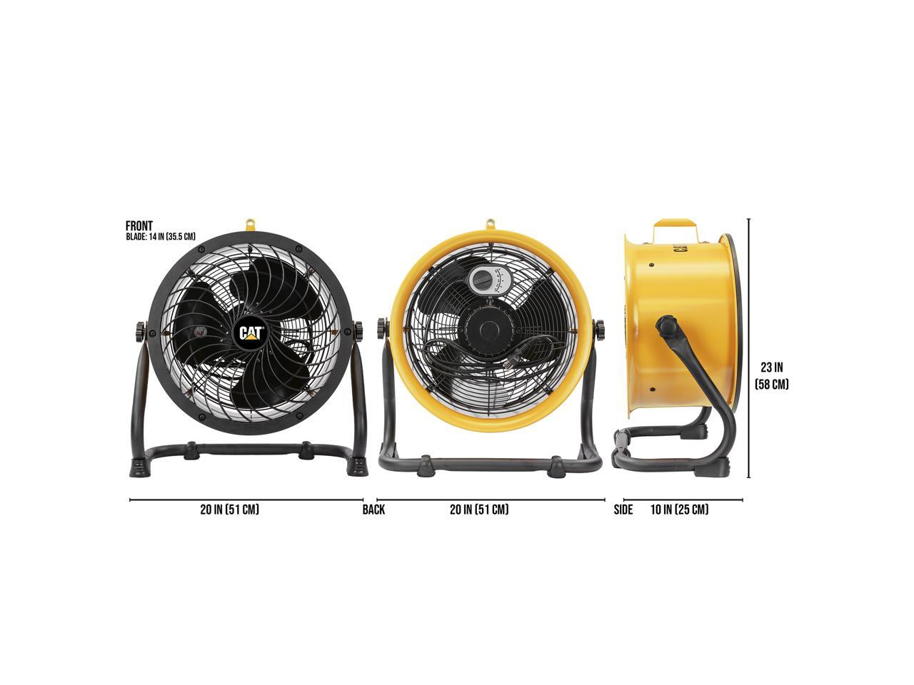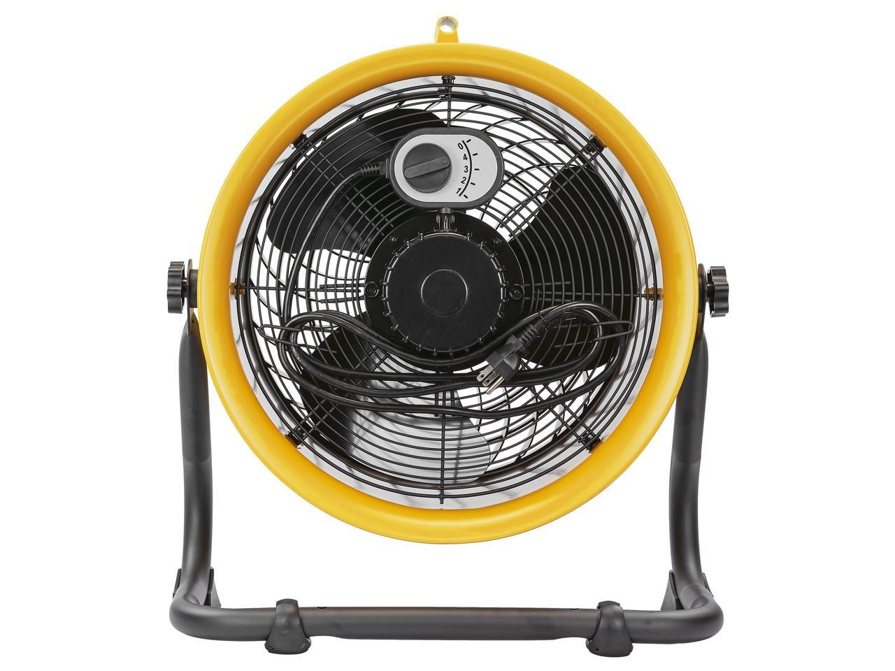 Caterpillar® fan (CF-HVD-14AC-YW) 14”-Blade High-Velocity Drum Fan Heavy Duty Industrial Grade (Yellow, 2-in-1): 2,300 CFM, 4-Speed, 360 Degree Adjustable Drum Head, Dual Ball Bearing Motor with Die-Cast Cover