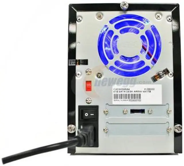 | Features | (4) 500GB SATA II drives Supports RAID Levels 0, 0+1, 5 and RAID 5+hot spare 2TB at Raid 0; 1.5TB Useable at Raid 5 Factory pre-configured in RAID 5 Transfer rate of 3.0Gbps (eSATA) Tray-Free swappable design Large 3" fan Systems Requirements: eSATA port PCI-Express Slot Windows Vista/XP/2000, or Mac OS 9.x to 10.5. (Not compatible with 10.5.1+) CD-ROM drive (to load installation CD) |