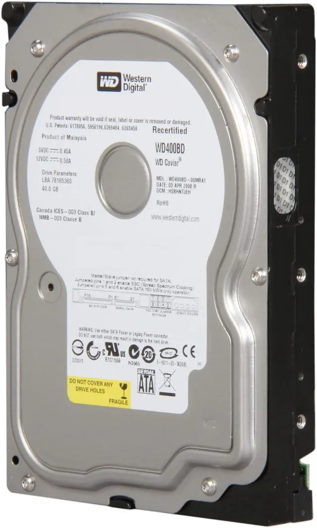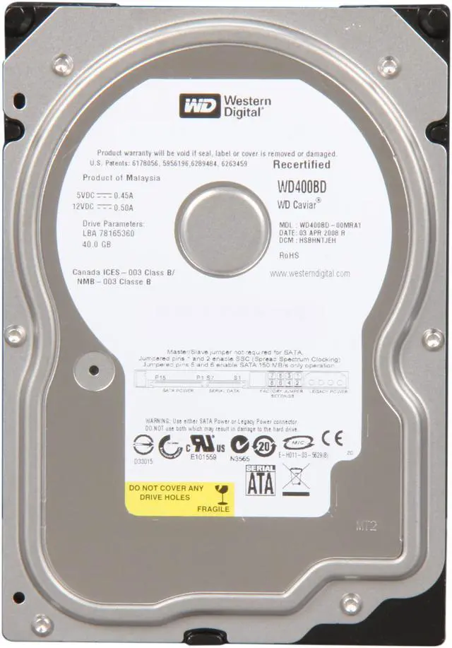 WD Caviar WD400BD 40GB 7200 RPM 2MB Cache SATA 1.5Gb/s 3.5" Internal Hard Drive Bare Drive