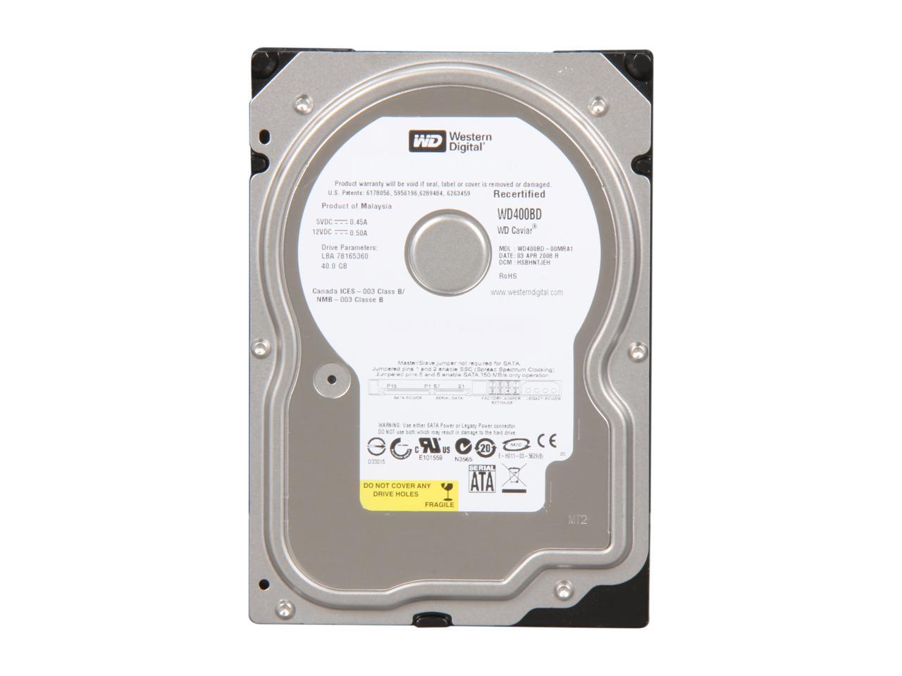 WD Caviar WD400BD 40GB 7200 RPM 2MB Cache SATA 1.5Gb/s 3.5" Internal Hard Drive Bare Drive