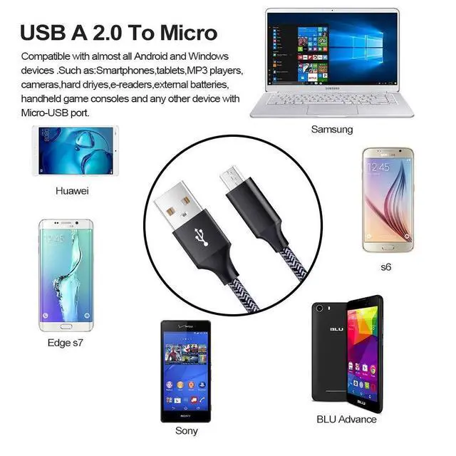 The nylon braided jacket and reinforced aluminum connector make the micro usb charging cable distinguished from the normal ones.