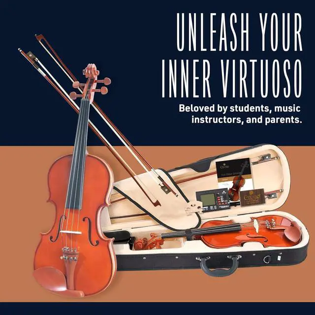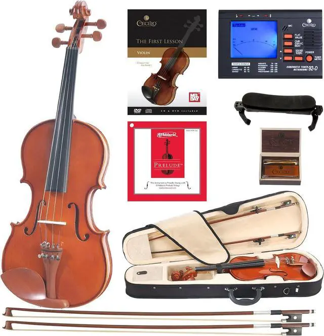 Cecilio CVN-200 Solidwood Violin 3/4 Size with D'Addario Prelude Strings, Brazilwood Bows, Hard Case, Tuner, and More - Affordable Entry to Mid-level Instrument for Beginners