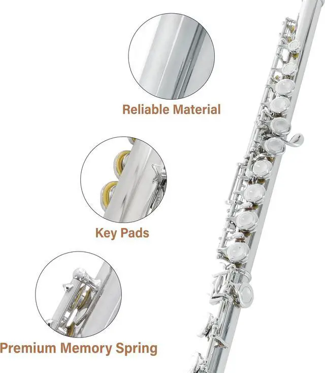 Elegant Design: As beautiful as most kids musical instruments, these nickel/silver plated flutes feature a flawless finish, closed/open hole, undercut beveled embouchure, with high-quality double bladder pads.
