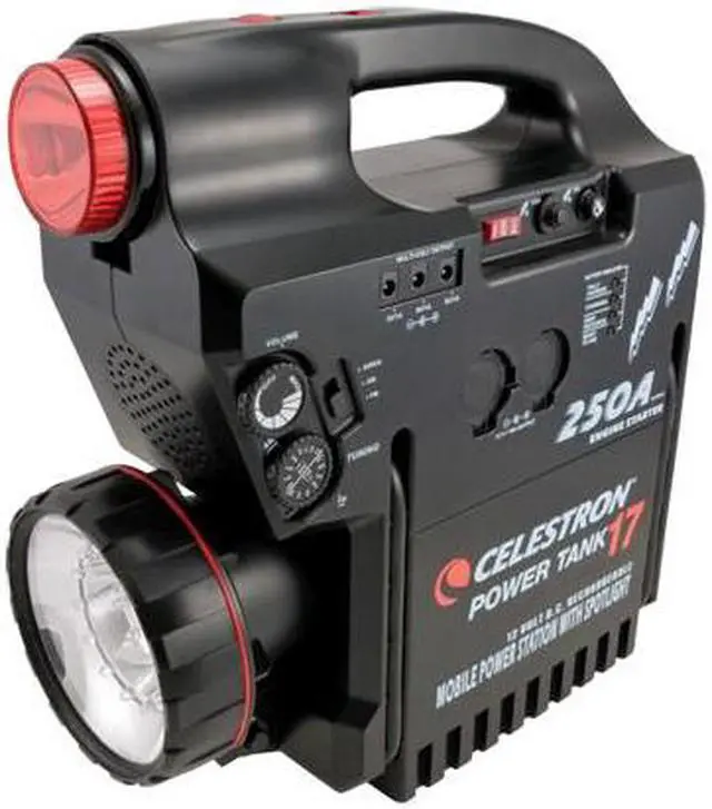 The extra large PowerTank 17 is more than just a telescope accessory; it's also an essential roadside assistant. Keep your Power Tank fully charged in the trunk, and you'll have enough power on hand to jump start weak car batteries using the booster terminals. You can even use it to charge drained electronic devices with a cigarette lighter adapter. Power Tank also comes with a built-in siren and AM/FM radio for emergencies.
