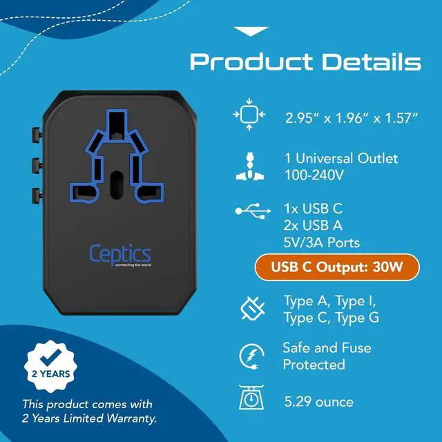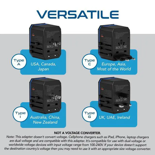 | Universal (Almost any plug) | Universal (Almost any plug) | Universal (Almost any plug) | Universal (Almost any plug) | Universal (Almost any plug) | N. American (2 or 3-prong) | N. American (2 or 3-prong) |