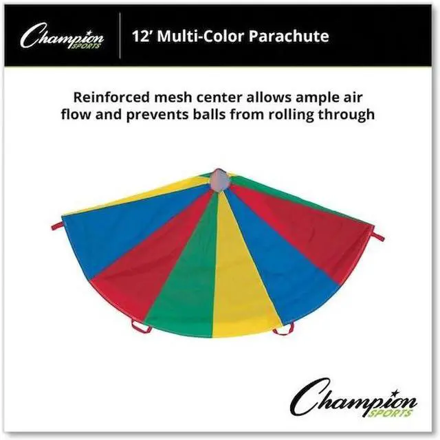 The Champion Sports Multicolor Parachute provides your students with high-flying fun! It can be used for many parachute games. Featuring nylon fabric and reinforced easy-grip handles, this parachute is extremely durable. In addition, it can be easily folded for space-saving storage.